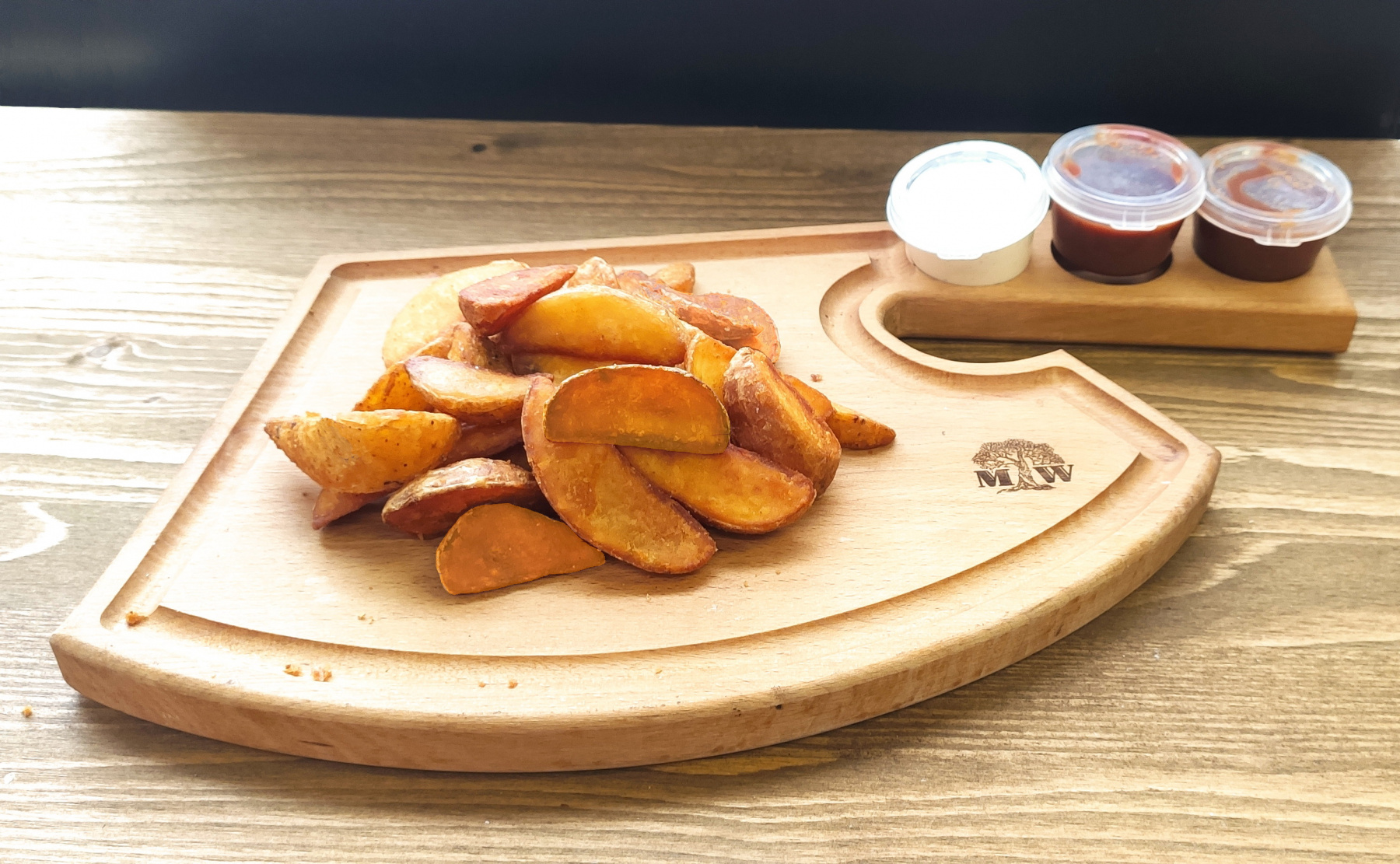 Порция вкуснейшего картофеля по деревенски с соусом на выбор!