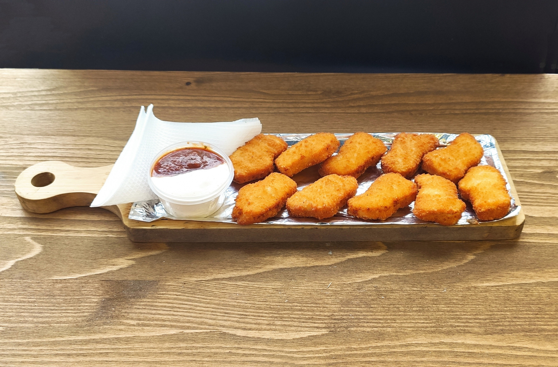 Состав: куриное филе, соль, сахар, яйцо куриное, кукурузная мука, смесь для панировки (сухари панировочные).