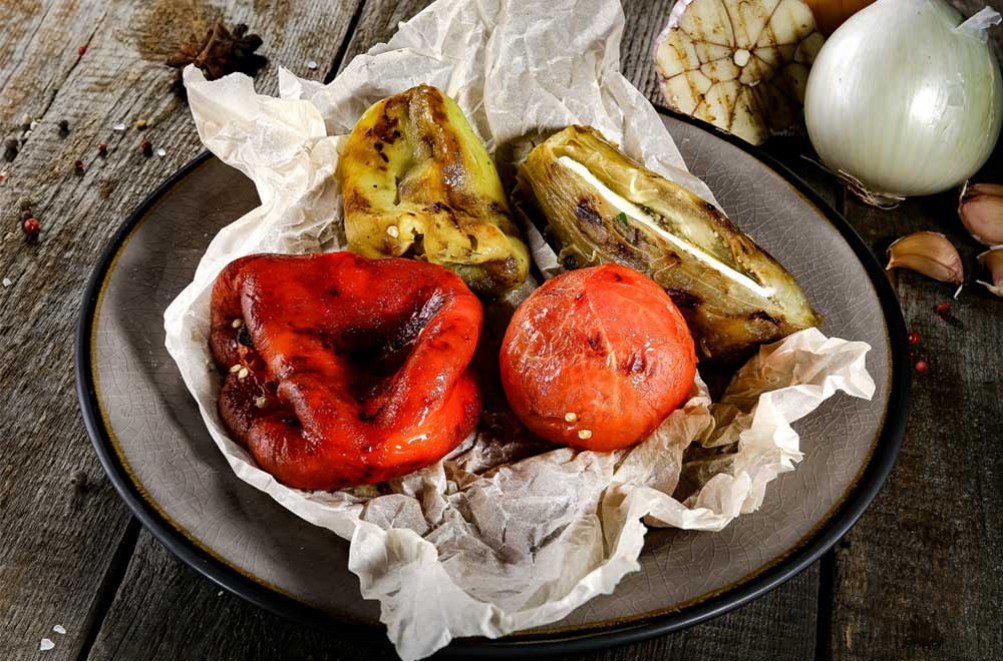 Состав: свежие помидоры на углях, болгарский перец на углях, баклажан на углях, лук на углях